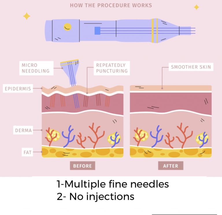 Microneedling procedures aren’t painful, but they can be uncomfortable, especially for patients who may be afraid of needles. Microneedling uses tiny needlepoints to create punctures within the dermis. Thus, helps stimulate collagen and elastin production in the body, leading to younger, smoother skin.